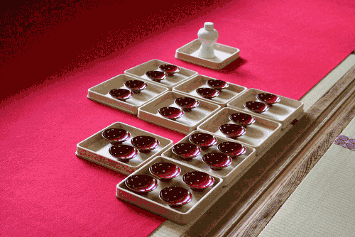 連合会が西陣織物工業組合にお願いしていただきました。 すると西陣の織屋さん28社が、協同で垂がりを作ってくれるとの返事がありました。これで、ひと安心の所、今度は京都府の植木さんより、